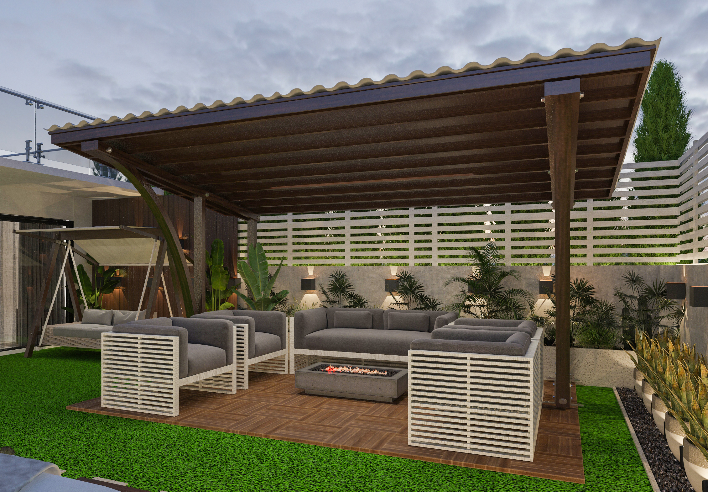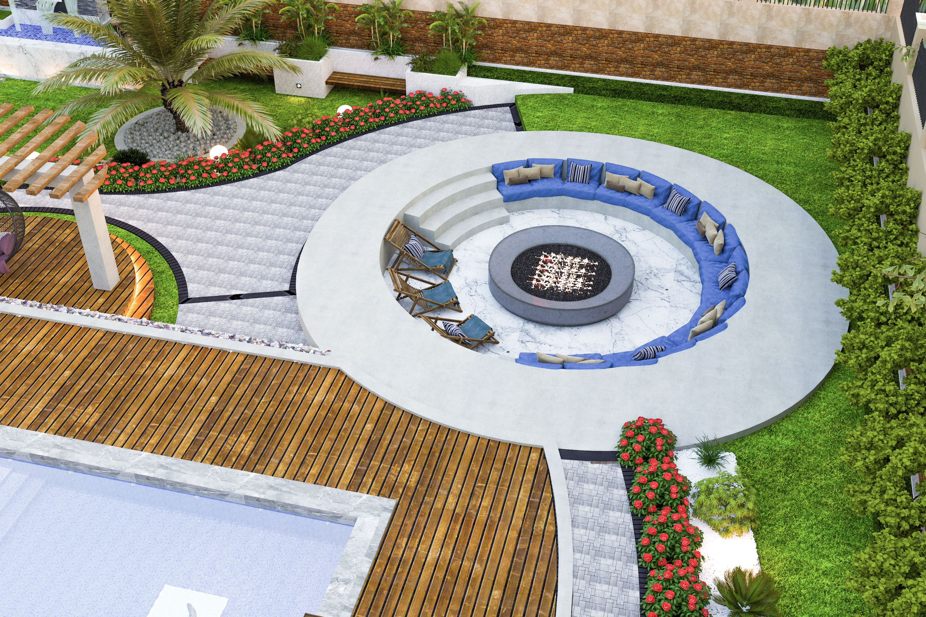 يعتمد شياد على الابتكار في افكار تصميم الحدائق واللاندسكيب وتوزيعها وتنسيق وتجميل الموقع إلى هارد سكيب وسوفت سكيب، الهارد سكيب يشمل أعمال : تسوية الأرض - البردورات - المشايات - البرجولات - البحيرات - الشلالات - النوافير - الإضاءة - شبكات الكهرباء والرى